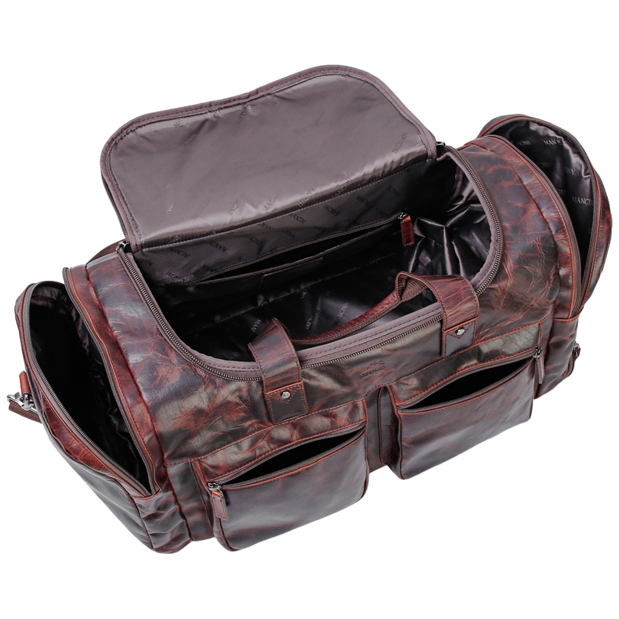 Classic Black Leather Duffel Bag with Shoulder Strap