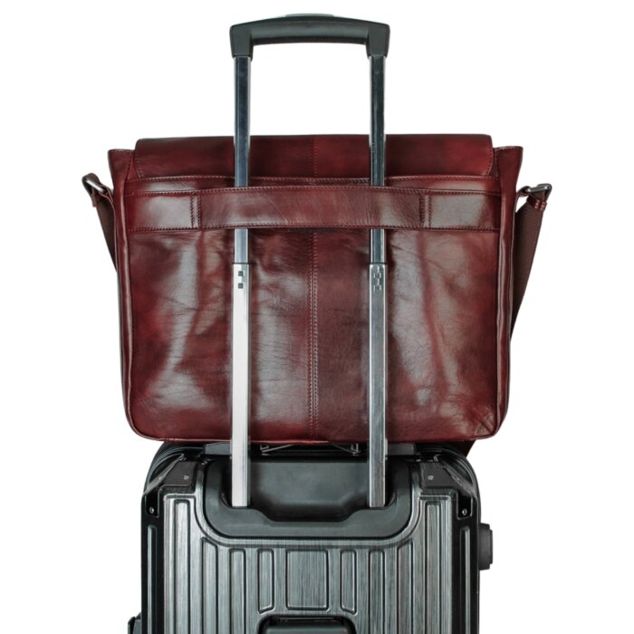 This messenger bag features a compartment equipped with separate tablet and laptop padded sleeves to keep your devices secure and protected. It has a large storage compartment, 2 separate pockets and a rear pocket. The right front pocket has an organizer equipped with the latest RFID wave blocking technology to ensure your data and cards are safe.