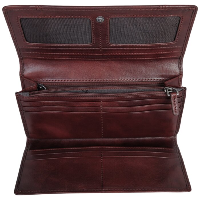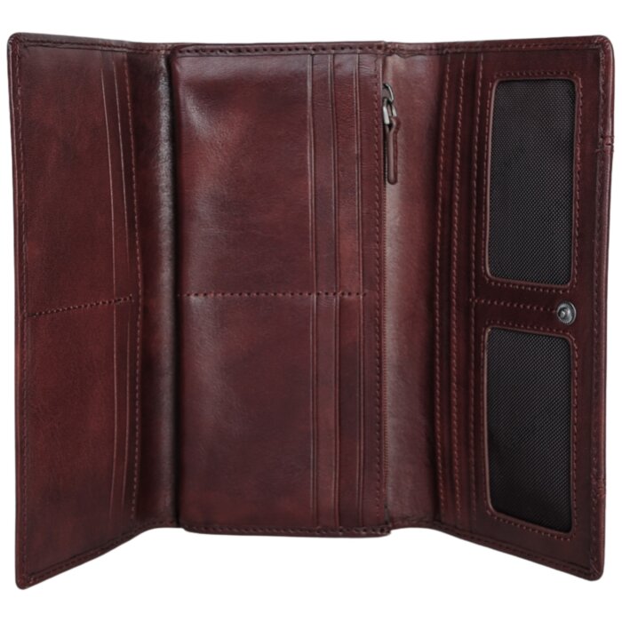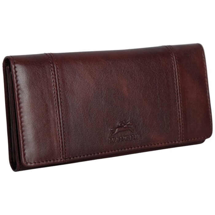 This classic trifold wallet will hold all your personal documents and more. Numerous slots and pockets will organize all your cards, I.D.s, tickets, receipts, etc. This fine leather wallet exudes classic elegance.