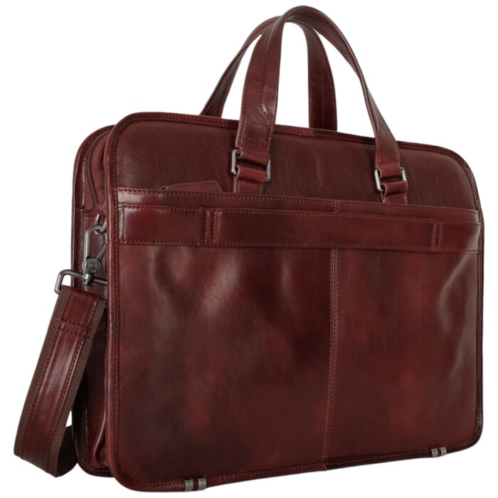 This triple compartment laptop briefcase features a padded section to keep your laptop / tablet protected. The organizer has a pocket equipped with the latest RFID wave blocking technology to ensure your data and cards are safe. The rear features a zippered pocket and an attach-a-bag strap to piggy-back the briefcase on other baggage.